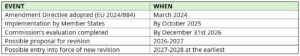 The outcome could be a comprehensive revision, which is expected to be proposed no earlier than 2026-2027 and therefore would not enter into force before 2027-2028 or later.